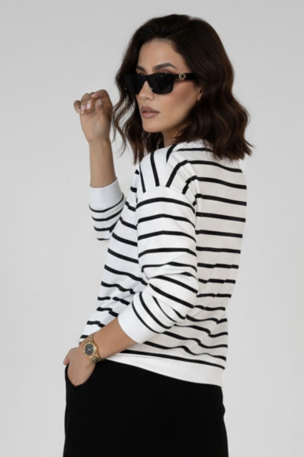 Çizgili Beyaz Sweatshirt Çizgili Siyah Sweatshirt